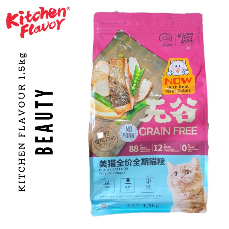 Harga kitchen flavor beauty cat food for all stages 1.5kg freshpack 1,5 kg.